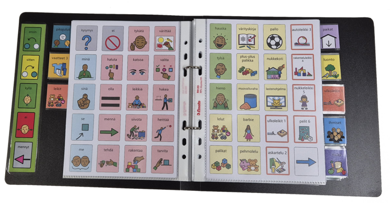 Ohjelmisto sisältää eri symbolikirjastoja kuten DialoQ-symbolit ja siihen voi hankkia uusimman PCS-kirjaston ja METACOM-symbolit. Sopii myös tekstikommunikointiin!